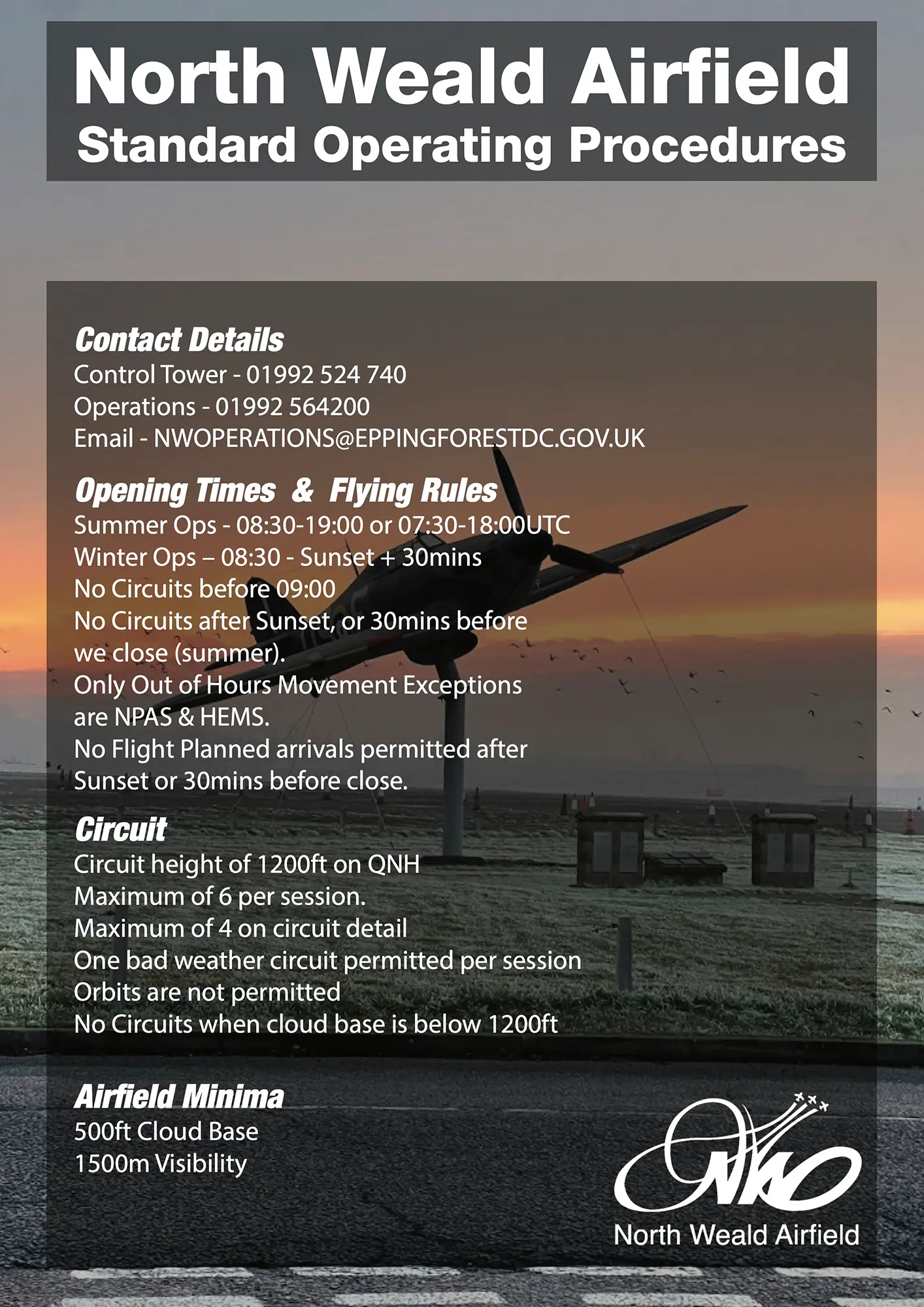 North Weald Airfield is a very busy unlicensed general aviation aerodrome with a variety of users, including emergency service helicopters, flight training schools and jet & warbird experience flights.